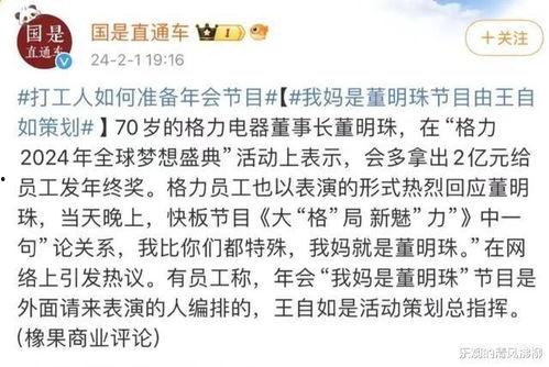 董明珠的爆料一出,网友们纷纷炸开了锅。有人表示:“董明珠这波操作太刚了,必须支持!”也有人质疑:“这只是一个员工的小错误,有必要公开曝光吗?”还有网友调侃:“看来格力电器的员工福利太好了,上班时间都能玩手机游戏。”